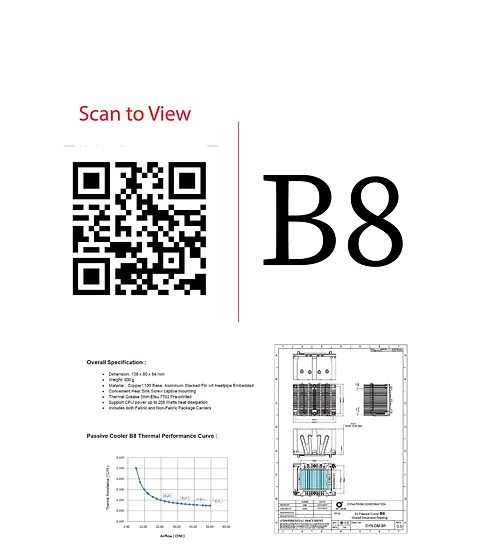 | Material | Aluminum Stacked fin soldered on Copper base with 4x Heat Pipes embedded |